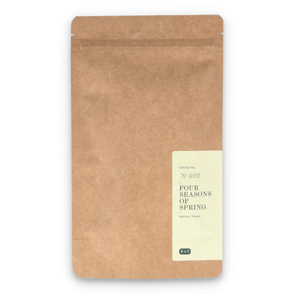 Paper & Tea Four Seasons of Spring N°402 er en klassisk oolong-te fra Taiwan, kendt for sin delikate og blomsterrige karakter. Teen brygger en lys, gylden kop med en frisk aroma, en fin sødme og en blød, vedvarende eftersmag.